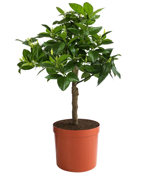 Außen leuchten sie so orangefarben, wie man es von Orangen kennt, schneiden Sie aber die Früchte an, erleben Sie eine goldrote bis rubinrote Überraschung. Und kosten Sie dann einen appetitlich roten Fruchtschnitz, werden Sie feststellen, dass auch der Geschmack viel intensiver ist als bei anderen Orangensorten, mit einer fein-herben Note. Doch nicht nur die Früchte der Blutorange sind eine Entdeckung, auch der Orangenbaum selbst ist ein immergrünes Schmuckstück mit einem schön kompakten, dichten Wuchs. Die Vorfahren der Orangen, die vielfach auch als Apfelsinen bezeichnet werden, stammen ursprünglich aus Südostasien und kamen etwa im 15. Jahrhundert mit den niederländischen Seefahrern nach Europa. Blutorangen sind eine Mutation verschiedener süditalienischer Orangensorten und werden vor allem in Sizilien angebaut, wo sie ihre kulinarischen Spuren auch in der dortigen Küche hinterlassen haben.