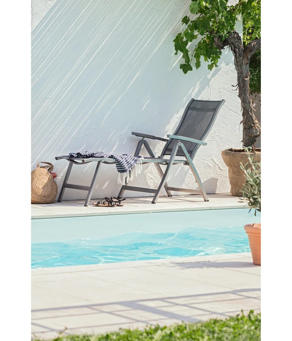Stabile Liege, extra hoher Einstieg, verstellbare Rückenlehne