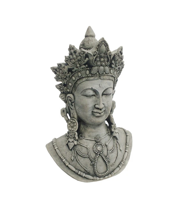 Jeder, der schon einmal eine Reise nach Fernost unternommen hat, kennt Büsten wie sie dieser Beton-Buddha nachempfindet. Holen Sie sich dieses Flair nach Hause und unterstützen die Wirkung der Beton-Buddha Büste mit passenden Accessoires. In Ihrem Garten wächst ein Bambus? Dann setzen Sie die Beton-Buddha Büste einfach wie zufällig davor und legen einige schöne Steine daneben – fertig ist ihr asiatischer Blickfang. Oder verzaubern Sie Ihre Terrasse, indem Sie Ihren Miniteich mit einer Seerose bepflanzen und die Buddha-Büste dazu arrangieren.