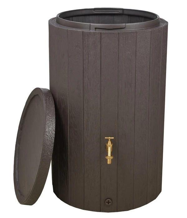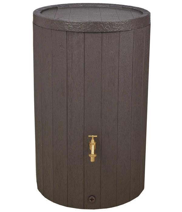 Sie möchten Ihren Wasserverbrauch beim Gießen Ihrer Pflanzen im Garten senken und sind auf der Suche nach einer praktischen und effizienten Lösung? Dann ist der Timber Regenspeicher der Marke GARANTIA der perfekte Auffangbehälter für Sie! Mit der täuschend echt wirkenden Holzoptik des Wasserbehälters sorgen Sie dafür, dass sich der Tank stilvoll und harmonisch in das schöne Ambiente Ihres Zuhauses einfügt. Ein abnehmbarer Deckel mit integrierter Kindersicherung verhindert einerseits das Ertrinken von Tieren und ermöglicht Ihnen andererseits eine schnelle und bequeme Wasserentnahme. Zusätzlich stehen Ihnen beim Timber Regenspeicher von GARANTIA zum Bewässern zwei Gewindeanschlüsse für Auslaufhähne und Schläuche zur Verfügung.