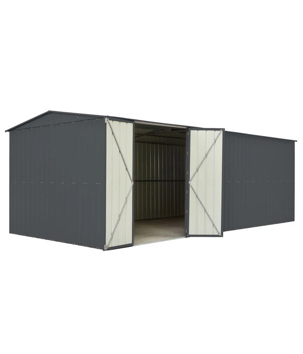 Die praktischen und großzügigen Doppelschwingtüren ermöglichen ein unkompliziertes Ein- und Ausladen all Ihrer Geräte. Dank der vorgefertigten Elemente ist das Gerätehaus schnell und unkompliziert aufgebaut. Die komplett feuerverzinkte Stahlblechkonstruktion zeichnet sich zudem besonders durch Stabilität und Langlebigkeit aus. Das bedeutet, dass es Ihnen über viele Jahre hinweg treue Dienste leisten wird und auch bei Wind und Wetter beständig ist. Und falls Sie irgendwann einmal mehr Platz benötigen, können Sie es jederzeit durch ein Erweiterungsmodul entsprechend Ihrer Vorstellungen vergrößern. Investieren Sie in die Qualität des Metallgerätehauses Craft 1510 von Globel und genießen Sie Ihre Werkstatt oder Ihre Gartenutensilien in einem stabilen und praktischen Unterstand.