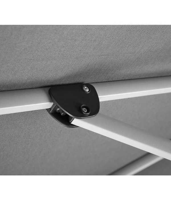 An heißen Tagen bietet der Schneider Ampelschirm Monaco angenehme Temperaturen und zuverlässigen Schutz vor UV-Strahlung. Mit seiner Funktionalität entspricht er höchsten Ansprüchen. Der Freiarm-Schirm hat eine Windöffnung, er ist wasserabweisend und verrottungsfest. Sein stabiles Gestell ist aus Aluminium gefertigt. Die Oberfläche wurde granitgrau pulverbeschichtet. Der Schneider Ampelschirm Monaco harmoniert im Stil mit vielen Gartenmöbeln. Im Griffteil ist die Kurbelmechanik integriert, die es Ihnen erlaubt, den Schirm einfach aufzuspannen und wieder zu schließen. Durch einen kugelgelagerten Drehmechanismus, den Drehteller, können Sie das Schirmdach nach Belieben 360 Grad per Fußpedal schwenken. Am Mast befindet sich ein leichtgängiger Schieber, um den Neigungswinkel des Schirms nach Ihren Wünschen einzustellen – immer der Sonne nach. Der Schirm ruht sicher auf einem Ständer von mindestens 40 kg Gewicht. Der Plattenständer ist für 4 Einlegeplatten ausgelegt, die Wegeplatten 50 x 50 x 5 cm sind aber nicht im Lieferumfang des Sonnenschirms Monaco enthalten. Eine Schutzhülle mit Reißverschluss und Stab ist als Zubehör immer dabei.