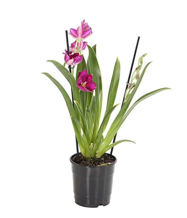 Galten Orchideen früher als teure und seltene Raritäten, die unter großen Mühen im Regenwald gesammelt und per Schiff aus ihrer fernen Heimat zu uns gebracht werden mussten, so können sie heute dank spezieller Zuchtverfahren ohne große Umwege den Platz im Blumenfenster einnehmen und Räume mit ihrem exotischen Flair bereichern. Die Stiefmütterchenorchidee gehört zu den besonders dekorativen Vertreterinnen, denn sie präsentiert sich im Schmuck wunderschön großer Blüten, deren Zeichnung an unsere heimischen Stiefmütterchen erinnert. Und wie bei den meisten Orchideenarten gibt es auch die Stiefmütterchenorchidee in verschiedenen leuchtenden Farben, so dass die Wahl oft schwer fällt. Die mehrjährige Zimmerpflanze bildet Jahr für Jahr einen neuen Pflanzentrieb (Bulbe), aus dem im folgenden Jahr 1-2 neue Blütenrispen treiben.