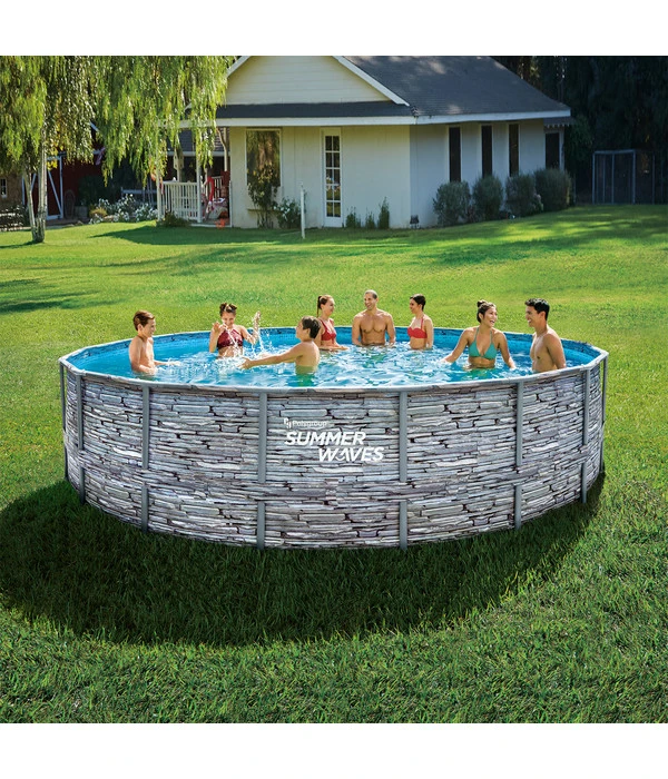 Ihnen gefällt die Vorstellung von einer schnellen Abkühlung an einem heißen Sommertag? Dann ist der Summer Waves Elite Frame Pool genau das Richtige für Sie. Nach einem ausgedehnten Sonnenbad auf der Terrasse sorgt er für eine angenehme Erfrischung und bietet dabei genug Platz für große sowie kleine Badegäste. Das raffinierte Snap-In-System ermöglicht einen einfachen Auf- und Abbau, sodass dem spontanen Schwimmvergnügen nichts mehr im Wege steht. Durch die edle Steinoptik ist der Pool zudem ein echter Hingucker in Ihrem Garten.