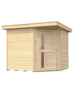 Auch bei einem kleinen Garten gibt es immer eine Menge Dinge, die es unterzubringen gilt. Angefangen beim sperrigen Rasenmäher bis hin zum klitzekleinen Blumentopf hätte man doch gern alles ordentlich unter Dach und Fach. Jedes Gerät soll seinen festen Platz haben, möglichst raumsparend untergebracht sein und dabei noch gut vor der Witterung geschützt. Wohl dem, der auf seinem Grundstück ein schickes Raumwunder wie das Weka Gartenhaus 229 A aufstellen kann! Der Vorteil dieses ungewöhnlichen Holzhauses liegt in seiner praktischen 5-Eck-Form. Dadurch fügt es sich auch im hintersten Winkel Ihres Grundstücks perfekt ein – und zeigt sich zum Zentrum Ihres Gartens hin von seiner besten Seite, da die Tür mittig ausgerichtet ist. Am besten messen Sie sofort nach! Nutzen Sie schnell diese tolle Gelegenheit und freuen Sie sich gleich nach dem Aufbau des Weka Gartenhauses 229 A über einen perfekt aufgeräumten Garten!